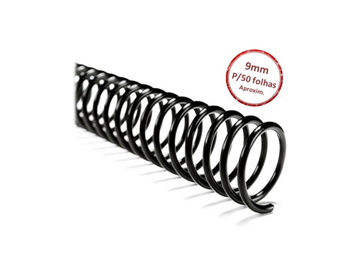 Espiral Para Encadernação Preto 09mm Para 50 Folhas A4 Pacote com 100un