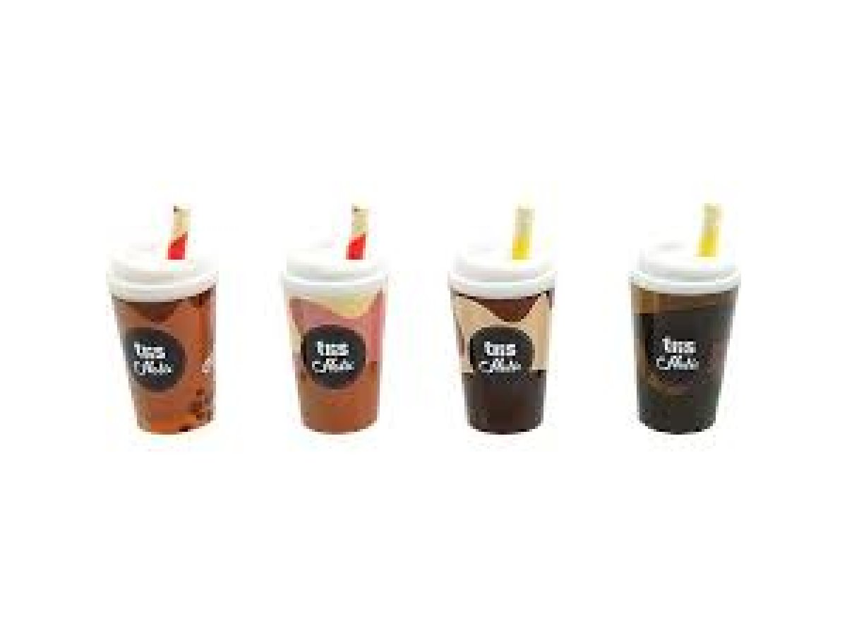 Dedicada aos amantes de café, a coleção Coffee Shop traz o aconchego e a energia das cafeterias para o universo da papelaria. A borracha Coffee Cup tem formato de copinho de café, inspirado em 4 sabores de bebidas. Textura macia!