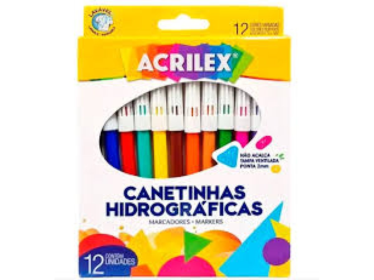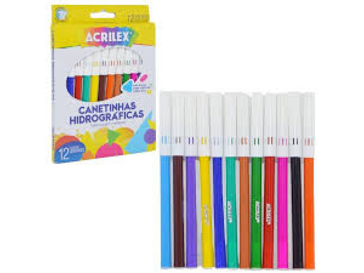 As Canetinhas Hidrográficas 12 Cores Acrilex são ideais para trabalhos escolares e artísticos
