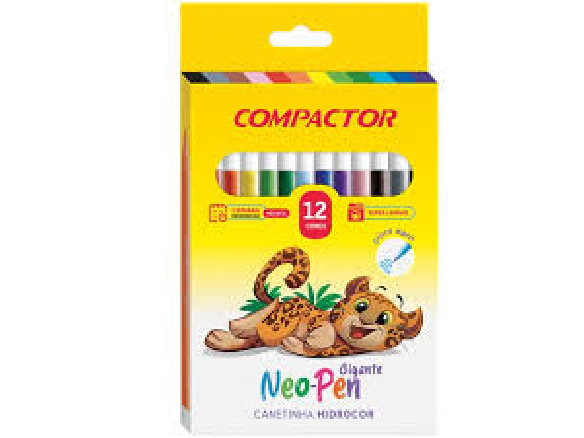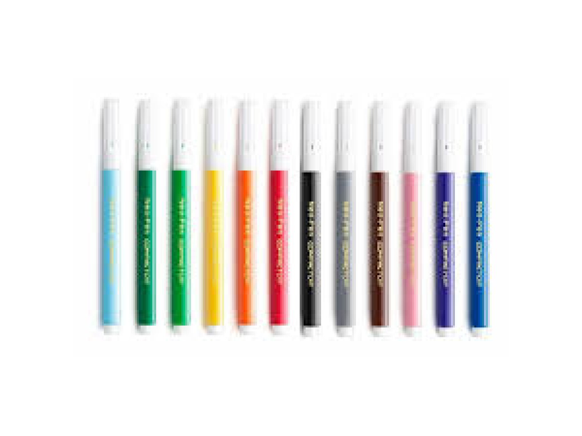 - Contém 12 canetas hidrográficas pequenas com cores diferentes.