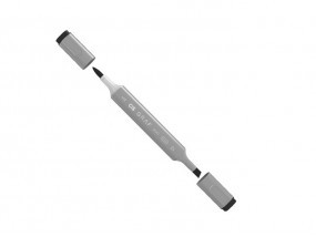 Marcador com 2 pontas, sendo uma pincel e uma larga chanfrada.