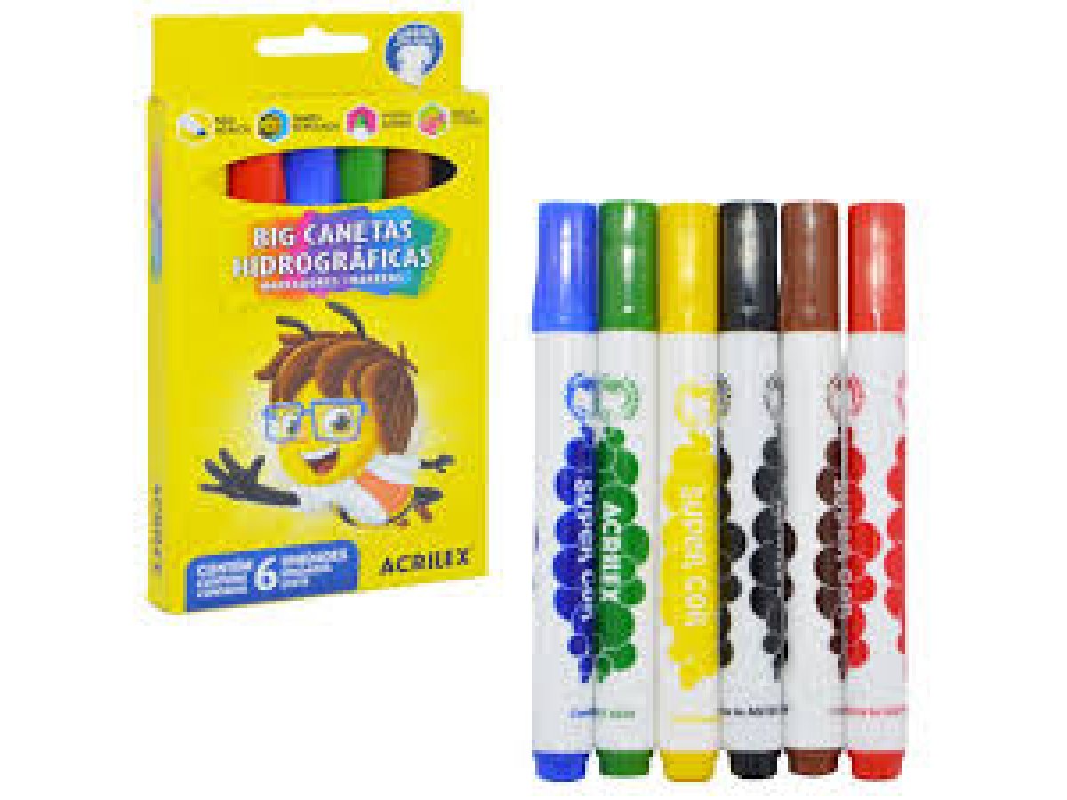 Canetinha Hidrográfica Big Acrilex 6 Cores para trabalhos artísticos e escolares.