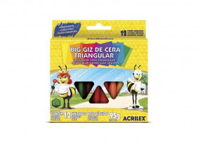 Giz De Cera 12 Cores Gizao Triangular Acrilex Big Giz Abelhinhas Ref. 9312