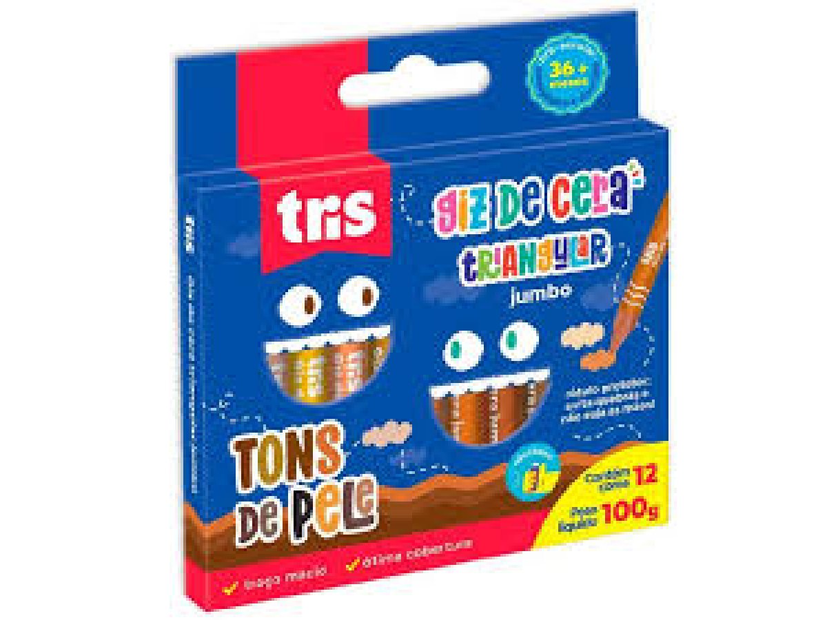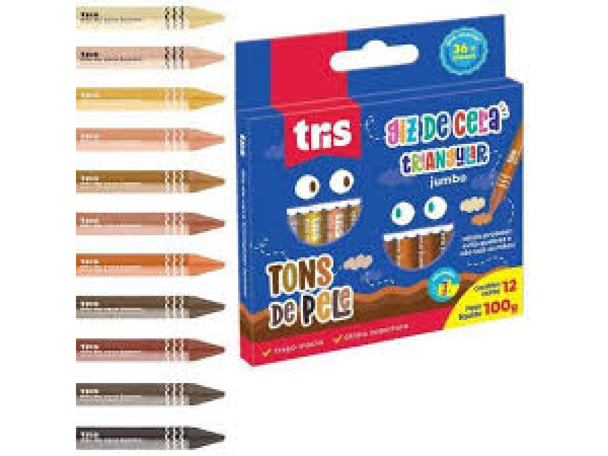 Giz de Cera Jumbo 12 Cores Tons de Pele Tris - Não Tóxico