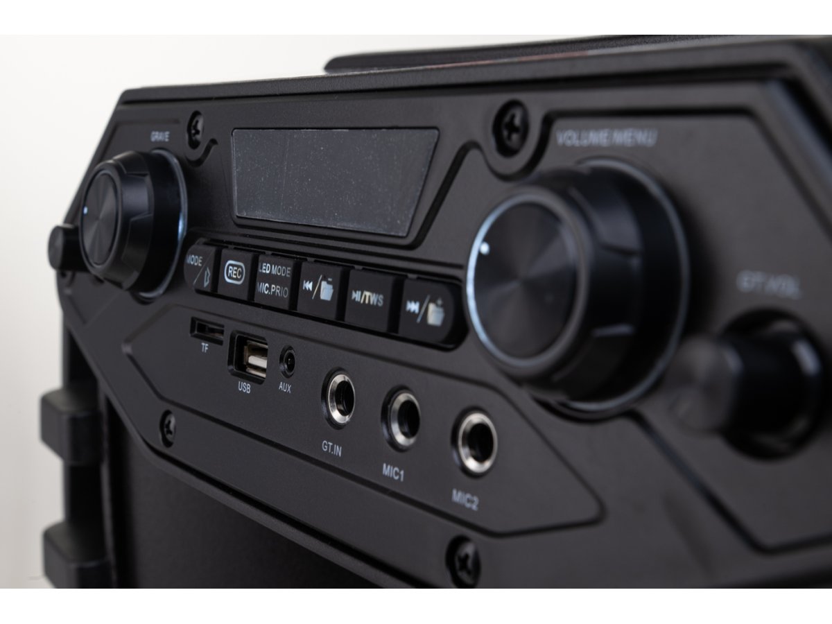 - 1 entrada para microfone e 2 para instrumentos