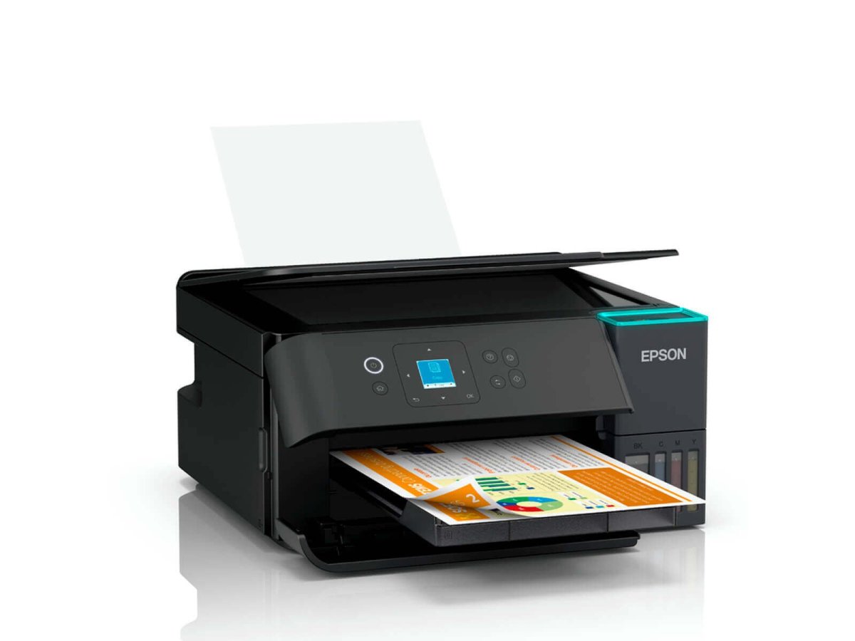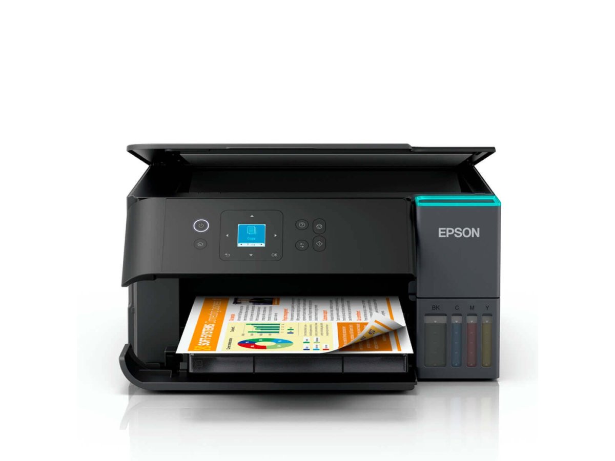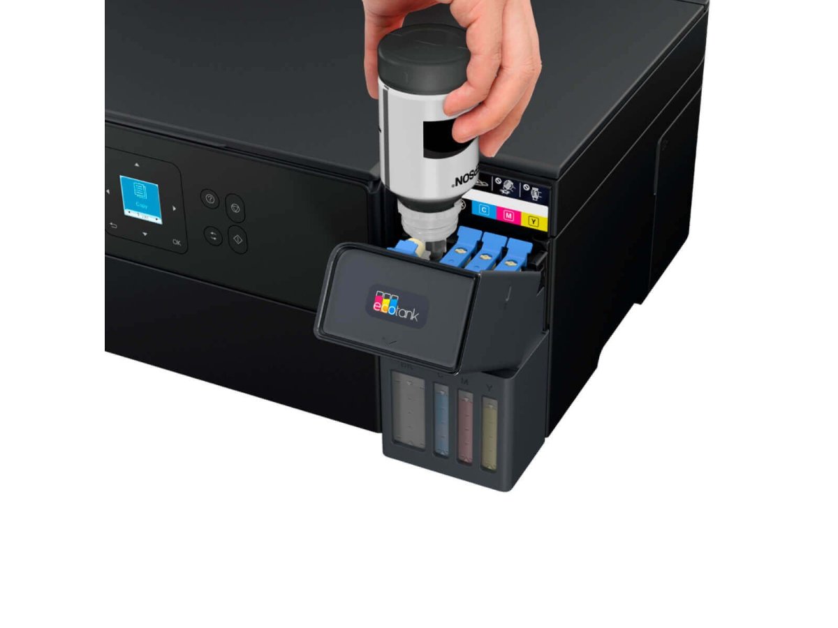 Itens da Embalagem: Multifuncional Epson EcoTank L4360, 1 kit de garrafas originais Epson T504 (Preto, Ciano, Magenta e Amarelo), Cabo de alimentação, Cabo USB, CD de instalação e Softwares Epson e Guia de instalação rápida, Garantia do Produto, Instrução para cadastro de garantia estendida.