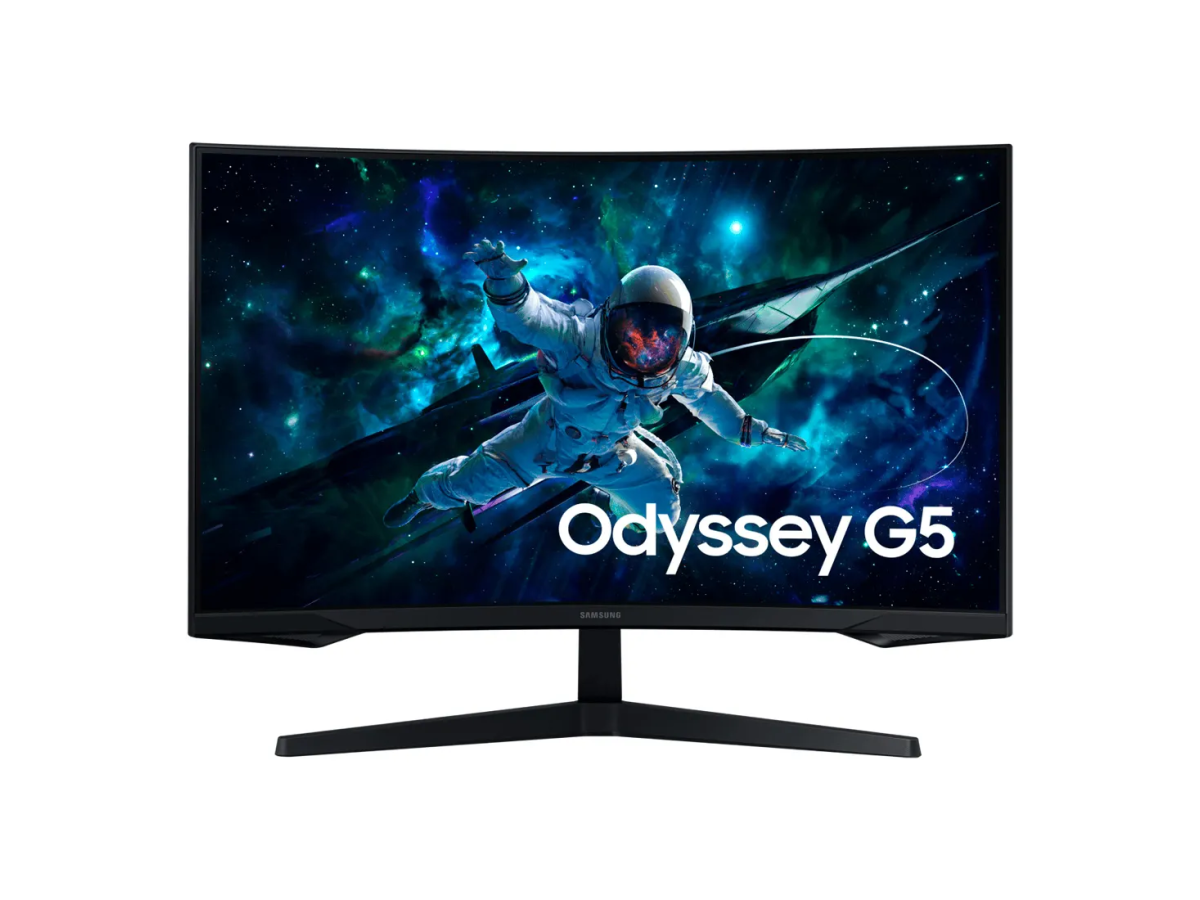 O Monitor Gamer Samsung Odyssey G5 Curvo de 32 polegadas entrega uma experiência visual imersiva e envolvente com sua curvatura 1000R e resolução QHD (2560x1440).
