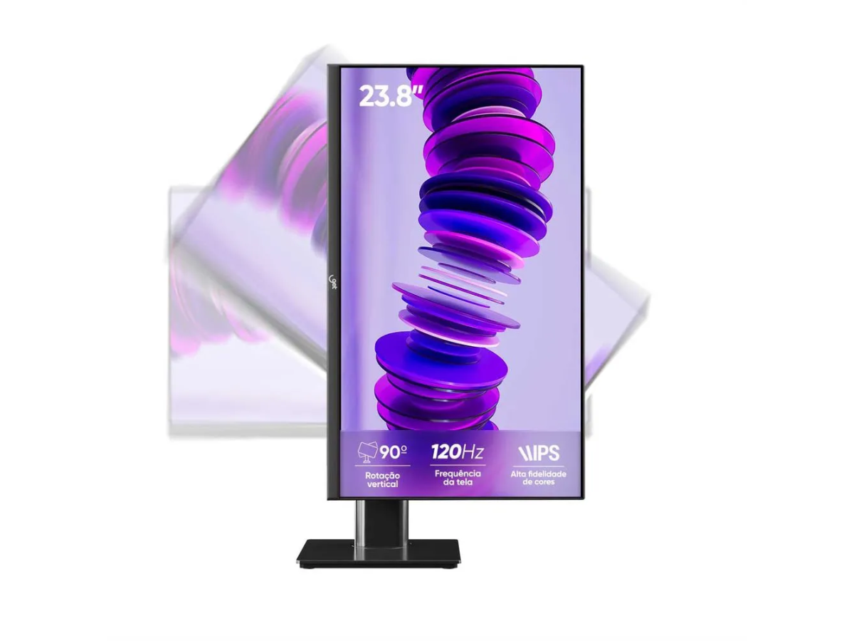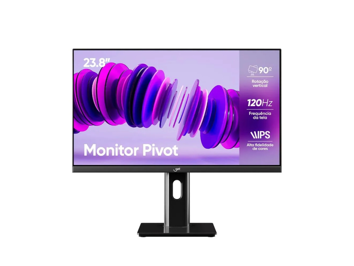 Monitor Pivot 23,8" Get IPS LED Full HD 7ms 120Hz VGA/HDMI Rotação Ajuste de Altura