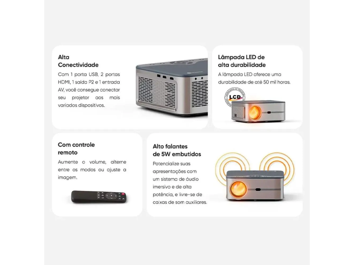 Projetor Multimídia 5000 Lúmens Full HD com HDMI, USB e AV