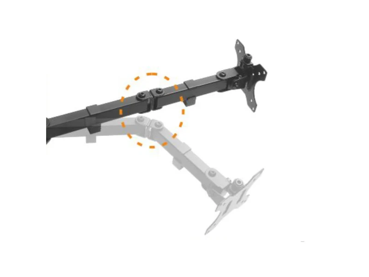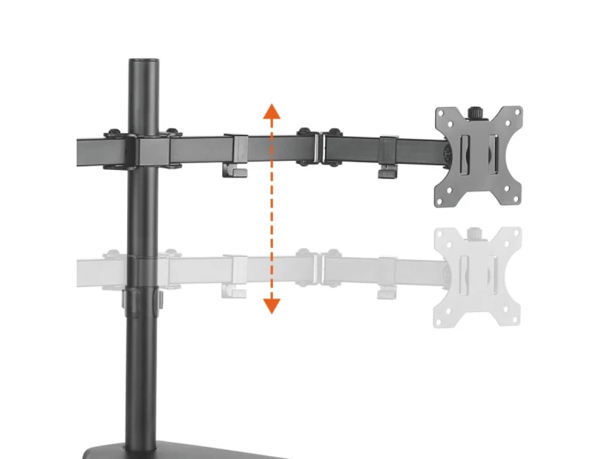 - Regulagem de altura vertical: até 450 mm (altura do centro do monitor até a base inferior)
